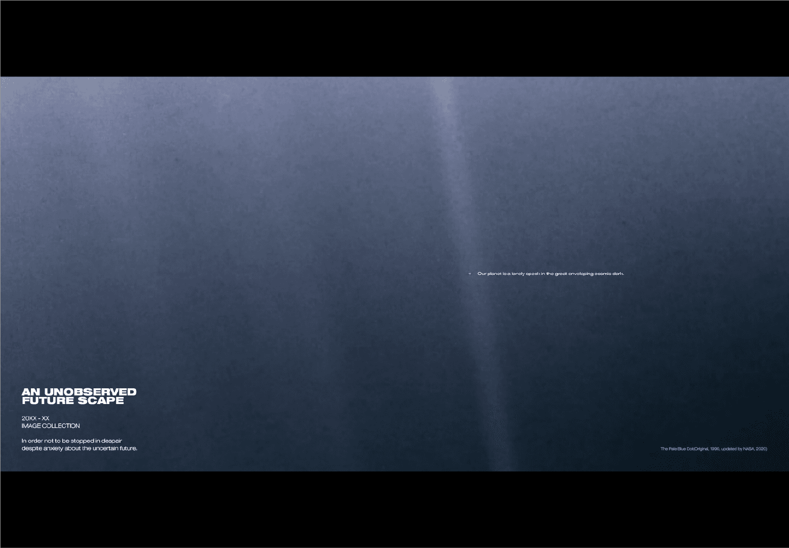 해당 프로젝트는 1) 완전 무결하게 정돈된 미래, 2) 효율만을 중시하는 미래, 3) 불안이 사라진 미래 세가지 테마를 중점으로 시각화된 것들을 수집합니다. 수집하는 과정에서 발견하는 공통점을 개인적인 의미와 함께 텍스트로 풀어내며 미래에 대한 풍경을 파편적으로 보여줍니다.