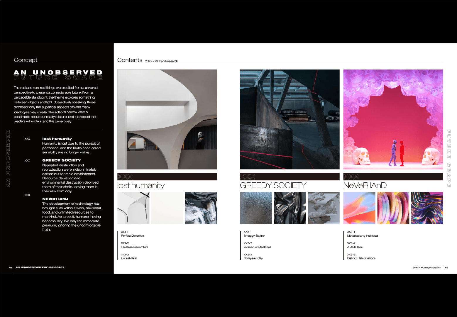 AN UNOBSERVED FUTURE SCAPE는 미래의 풍경을 모티프로 만든 CMF Book입니다.
